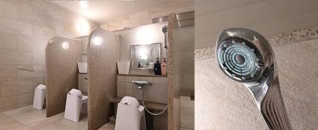 ▲洗い場のシャワーヘッドには Refa を採用