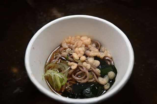 21時30分から23時まで、7階のラウンジに夜食が登場。この日は温かいお蕎麦でした。出汁が美味しく、身体が温まります。