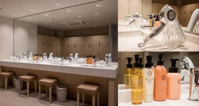 ドライヤーは女湯にのみ Refa を設置。基礎化粧品も用意しています。