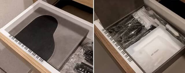 ▲アメニティーボックスはピアノがモチーフ