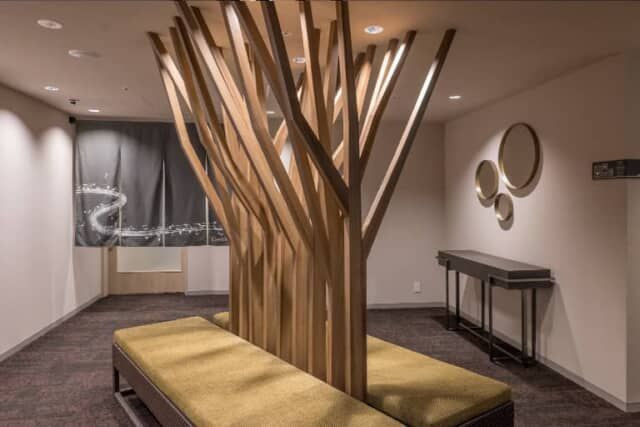 仙台の “市の木” ケヤキをイメージ。湯上がり処を飾ります。