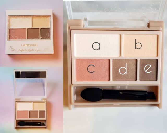aはアイベースやマットハイライト、涙袋のアクセントとして使えますし、bはメインカラー、cはアクセントとして使えます。そしてdはアイブロウとしてベーシックに使えますが、cを混ぜて赤みをいれることでトレンド眉が仕上がるので気分合わせて色をミックスしましょう。eはアイライナーや締め色として使うのがおすすめです。ミラー付きでかさばらないので、マルチに使えるこのパレットをポーチにいれておくとメイク直しも安心でしょう。