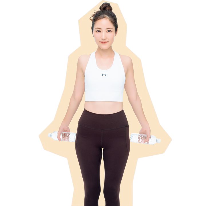 ペットボトルを持つと重さで腕を下げやすくなり、軽い筋トレにも。