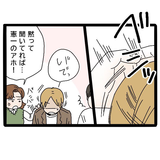 ベシッと思い切り憲一さんの頭をはたいて「黙って聞いてれば・・・憲一のアホ!」と、本気で怒ってなんども憲一さんの肩を叩きました。