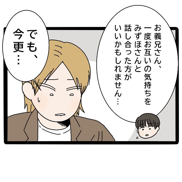 「お義兄さん、一度お互いの気持ちをみずほさんと話し合った方がいいかもしれません。」と冷静に言う隆明さんですが、「でも、今さら」と憲一さんは自信がない様子です。