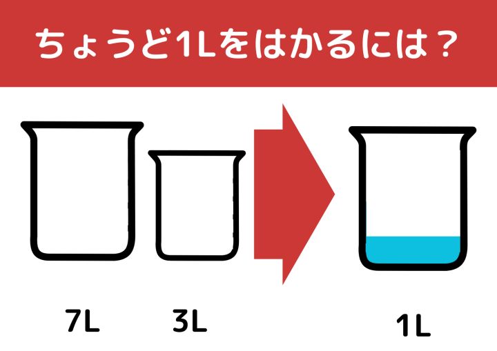 3. 【クイズ】正解できたら一流企業に入社できるかも?「7Lと3Lの容器で1L」をはかるには?
