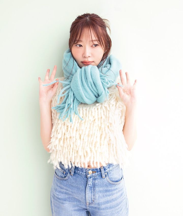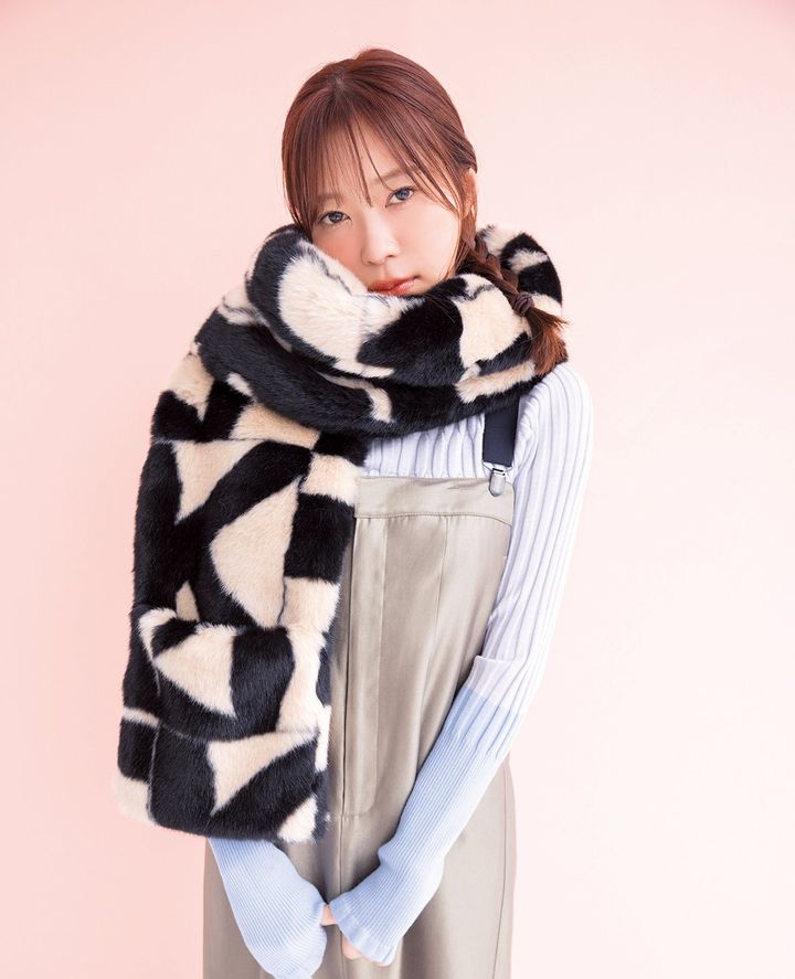 指原莉乃。ar12月号より マフラー¥6,380/リリー ブラウン トップス¥13,200、デニム¥19,800/アンヌーク
