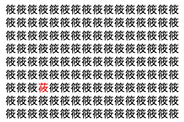 画像の中には、「筱」という漢字が縦に9行、横に16個並んでいます。 全部で144個となりますが・・・、そのうち1つは「異なる漢字」となってますよ!!