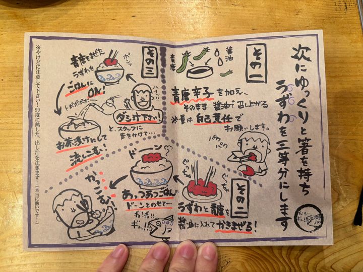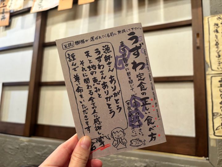 定食が運ばれてくる前に、うずわ定食の正しい食べ方の指南書をいただきました。