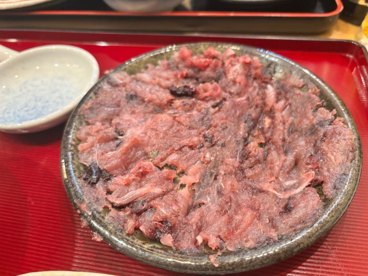 赤い削ぎ身が薄く切られて、たたきのような見た目。