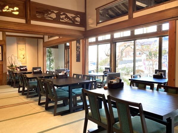 畳敷きの広い店内にテーブル席というスタイルで、とても落ち着く空間です。