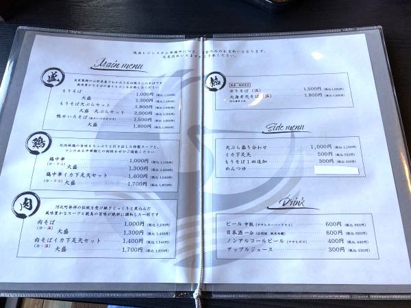 山形県産でわかおり石臼挽き二八そばのもりそばや比内地鶏のスープの鶏中華、山形県河北町の名物の肉そば、サイドメニューにはイカ下足天などもありますよ~。