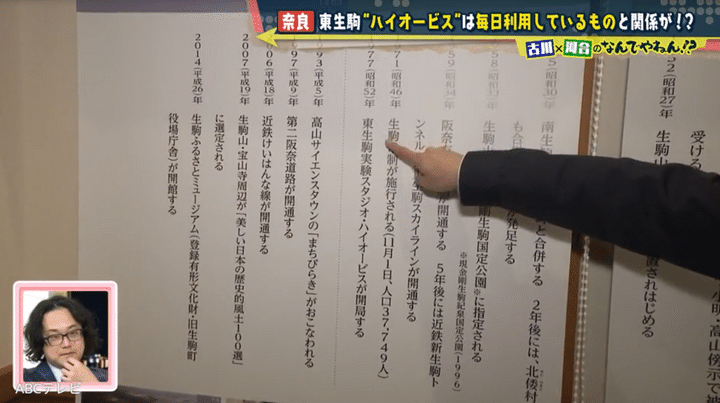 奈良に詳しい「奈良まほろばソムリエ」の藤井哲子さんいわく、ハイオービスとは高級住宅街のことではないが、この2つは非常に関係があるそうだ。彼女の話によると、河合と古川アナがおそらく毎日利用しているものだという。1977年にできたハイオービスには、「(当時)世界初のめちゃくちゃ画期的な計画」が関わっており、「おかげで今の私達の暮らしがある」のだとか。それは、東生駒駅と生駒駅の間を流れる竜田川を下流方向に調べれば、おのずと分かるらしい。