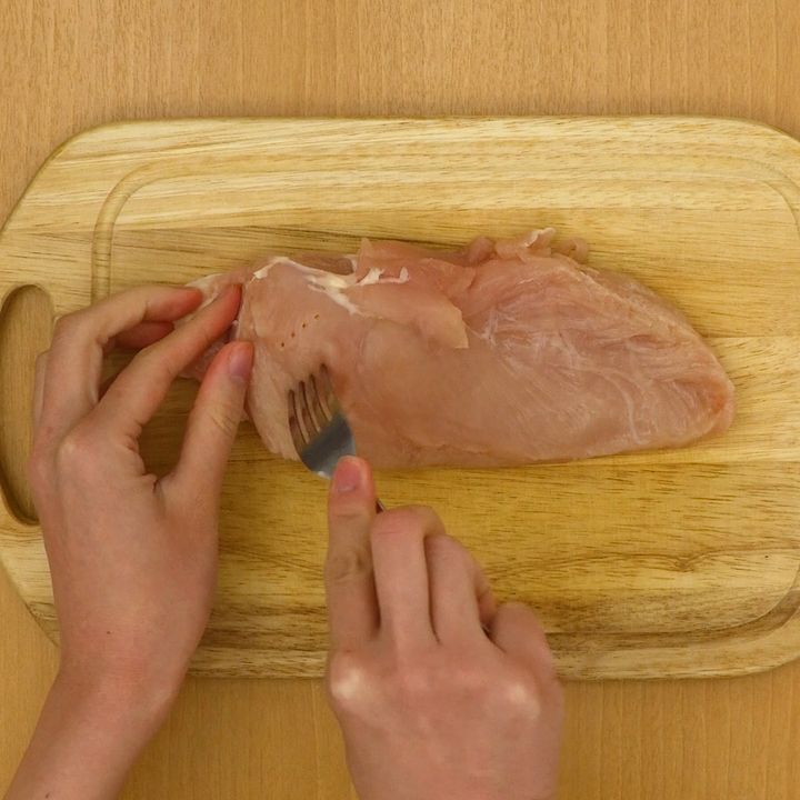 1.鶏肉は両面にフォークで数カ所穴をあける.