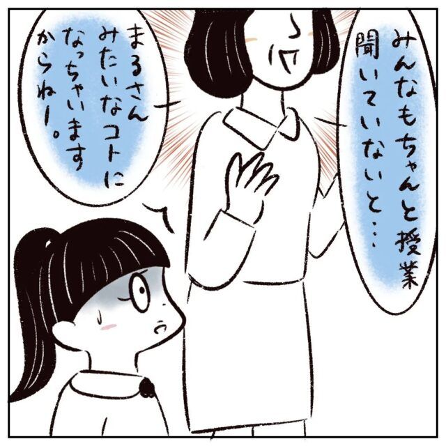 そして、「みんなもちゃんと授業聞いていないと・・・まるさんみたいなコトになっちゃいますからねー」とまるさんを笑いものにした先生。