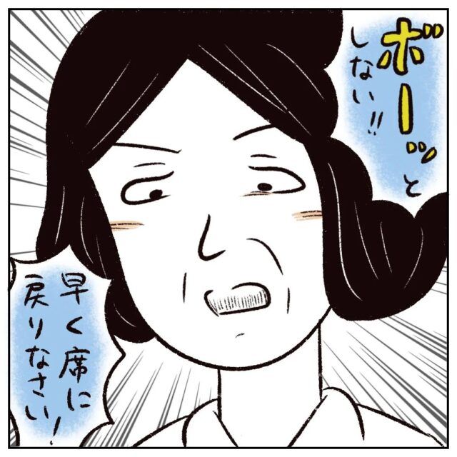 「ボーッとしない!!早く席に戻りなさい!」とまるさんを叱りました。