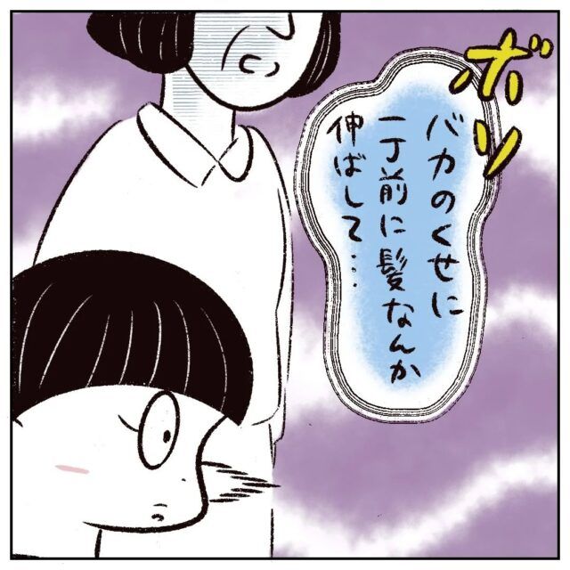 傷つき俯くまるさんに、先生はさらに「バカのくせに一丁前に髪なんか伸ばして・・・」とみんなには聞こえないようにボソッと呟いたのです。