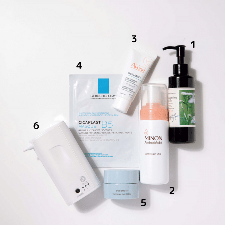 Step【2】クリームやマスクで潤いをしっかり閉じ込める 「空気が乾燥し湿度が下がれば肌は乾燥しますが、年齢を重ねると肌のバリア機能が低下し、水分をキープする力が落ちるため、より乾燥しがちに」。 バリア機能が低下すると外的刺激の影響を受けやすくなり、ゆらぎに傾くことも。そんな肌のピンチには、バリアを強化する敏感肌用保湿クリームやマスクを取り入れつつ、洗うケアも見直して。 「ゴシゴシ洗いは乾燥を加速させかねません。肌に潤いを残す洗顔料を使い、丁寧に洗うよう心がけて」。そしてバリア機能が低下した肌によく見られるのが、汗かぶれです。 「汗の刺激を減らすため、日中はタオルやティッシュなどで汗をこまめに押さえ、朝晩、穏やかな洗顔料でやさしく、しっかり洗います。また、炎症があるときは、炎症を抑えるシカ成分配合のケアを活用するという手も。ただし、症状がひどく湿疹のようになったら化粧品ではケアできないので病院へ」(髙瀬先生)
