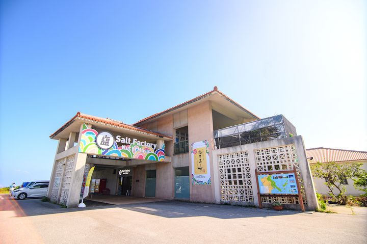 「ぬちまーす観光製塩ファクトリー(ぬちまーすかんこうせいえんふぁくとりー)」は「海中道路」のメイン道路から右に入った、島の東岸にあります。道路沿いに看板も多く出ているので、迷わず行けるはず。