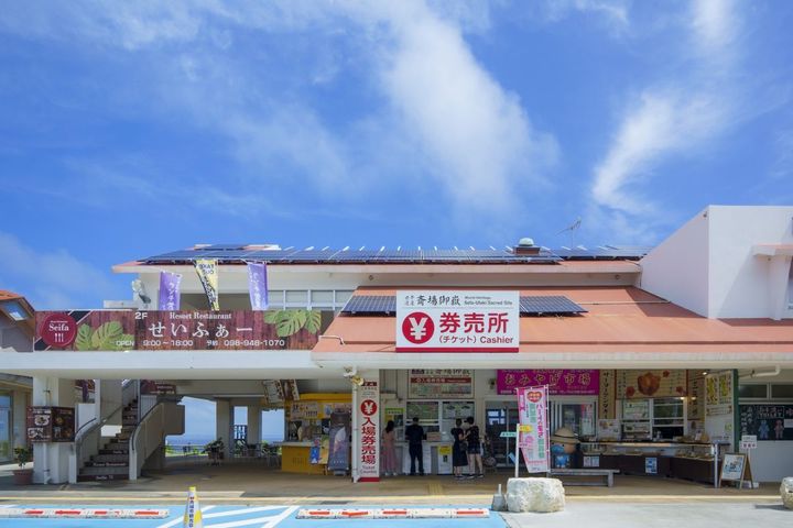 「南城市地域物産館(なんじょうしちいきぶっさんかん)」があるのは、人気観光スポット「斎場御嶽(せーふぁうたき)」の券売所がある建物の1階。斎場御嶽土産や南城市の特産品をはじめ、キュートな南城市公式キャラクター「なんじぃ」グッズが並ぶ、お土産探しにおすすめのスポットです。