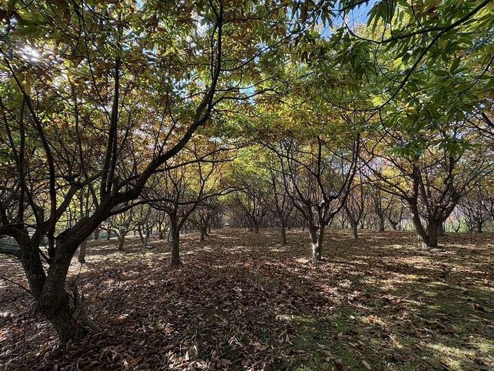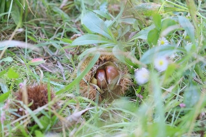 栗農園で栗拾いの様子。たくさんの栗が落ちています
