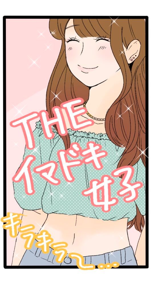 おへそが出ているパフスリーブのカットソーにデニム、ピアスにネックレスももちろんつけた「THEイマドキ女子」が登場!