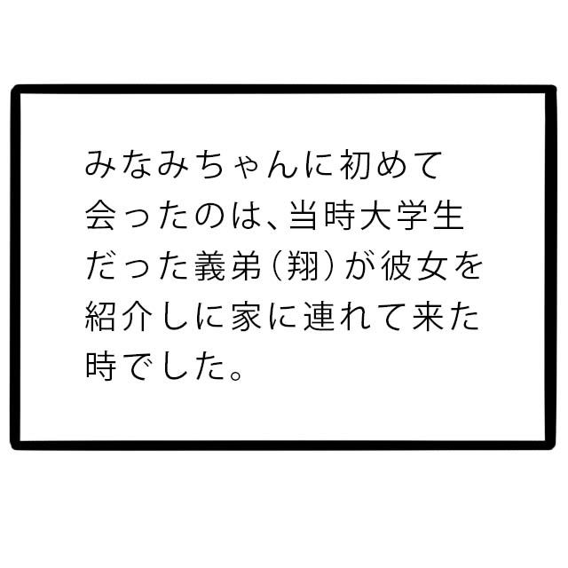 みなみちゃんに初めて会ったのは、当時大学生だった義弟(翔)が彼女を紹介しに家に連れて来た時でした。