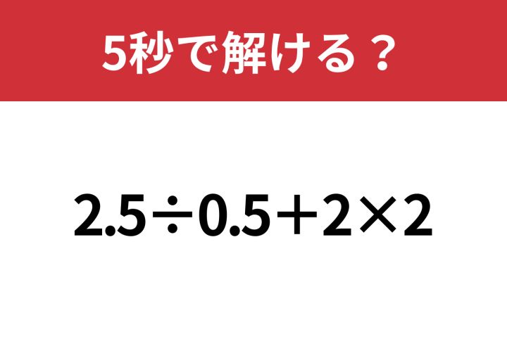 大人でも解けない人が多いかも?「2.5÷0.5+2×2」5秒で解ける?