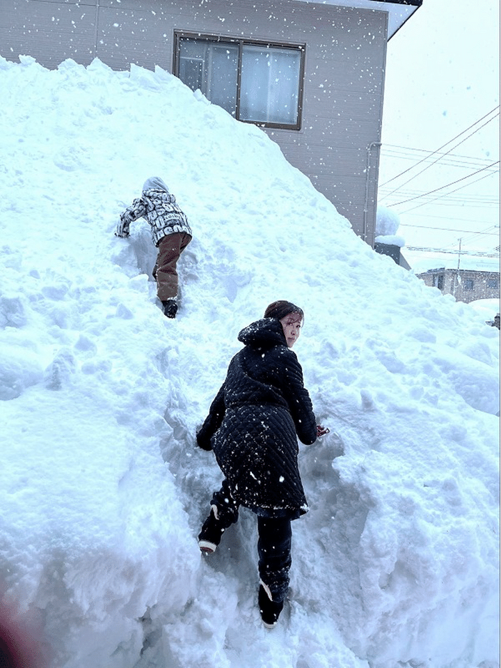 わかりますか…?家の2階の窓まで大きな雪山ができていたんです。