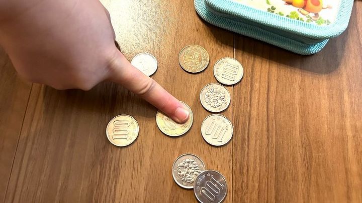 たまったお年玉の中身をすべて床に出して、100円玉は何枚あるか、500円玉は何枚あるか、全部足したらいくらになるか、など夢中で計算をしている姿も。