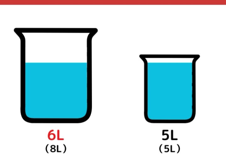 8Lの容器から5Lの容器に水を移します。