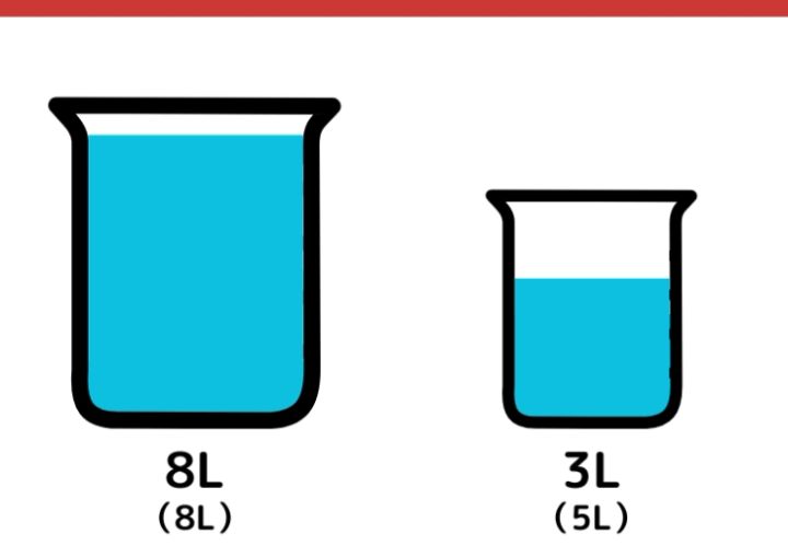 8Lの容器に入っていた3Lの水を5Lの容器に移します。