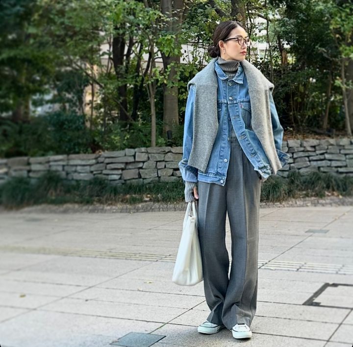 コーデ2.着やせには色もポイント。アイシーなグレーを選んで