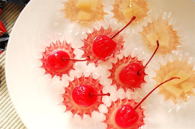 2. 【ヤバい…昭和感満載】ロッテの「小梅」を溶かしてさくらんぼをイン♪「小梅のボンボンゼリー」がエモい♡