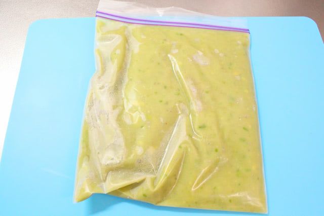 3. ジッパー付き保存袋に入れて平らにし、冷凍庫で冷やし固めます。