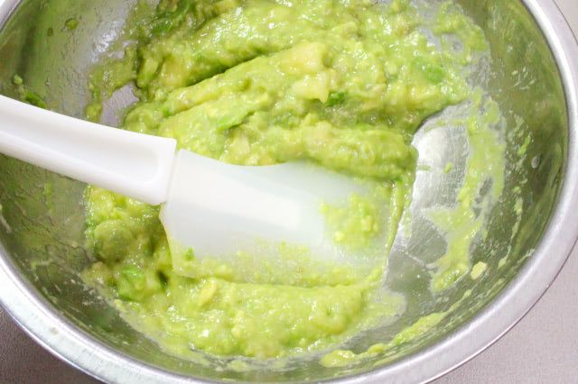アボカドの鮮やかな緑色がくすまないように、レモン汁を加えるのがポイントです。