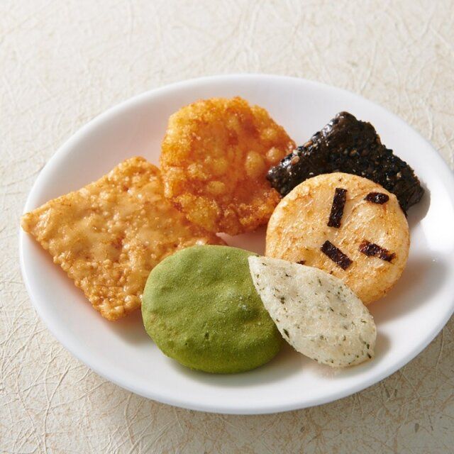 シャトレーゼの『吹き寄せ六煎』は、甘辛醤油味のふっくらと焼き上げられた「揚げ」、つぶつぶ食感の楽しい醤油味の「おこげ」、胡麻の香りを堪能できる「黒胡麻」、ソフトな食感の甘辛せんべいにのりをのせた「のり醤油」、あおさ入りの塩味のソフトせんべい「あおさ」、宇治抹茶の風味と砂糖の甘みを楽しめる「抹茶」が楽しめる詰め合わせ。