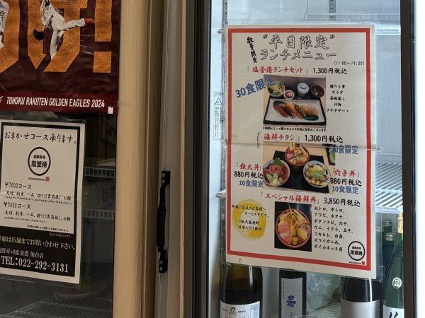 平日限定で11:00~14:00のランチタイムには、30食限定で1,300円で楽しめる「塩釜港ランチセット」があるのを発見。握り6貫、サラダ、茶碗蒸し、汁物、プチデザートが付くのはお得な内容ですね!