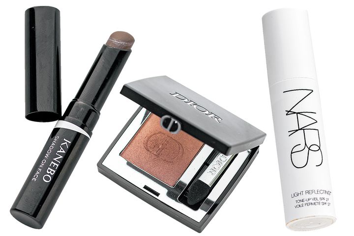 カネボウ シャドウオンフェース01は自然に見えるノーズシャドウ。Dior ショウ モノ クルール573 は透明感のあるブラウンの目元に。毛穴レスを目指してNARSのライトリフレクティング トーンアップヴェールをベースに。