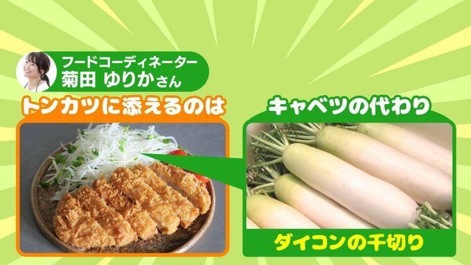 トンカツに添えるのは、ダイコンの千切りがオススメ。