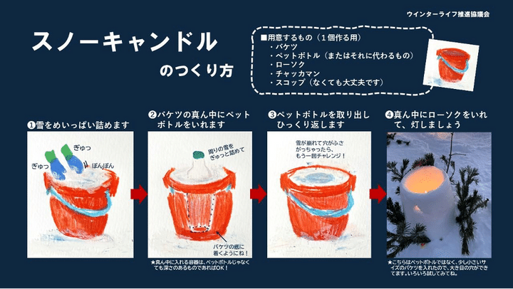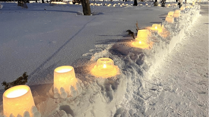 氷で作る「アイスキャンドル」は気温が相当低くないと凍らずに難しいのですが、実は雪で作る「スノーキャンドル」なら簡単!