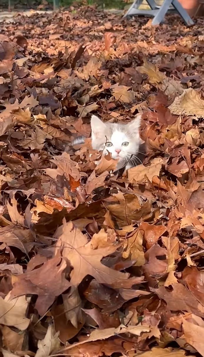 3. 落ち葉の海をカキカキ!ひょっこり顔を覗かせて無邪気に遊び回る子猫がかわいすぎる!【海外・動画】