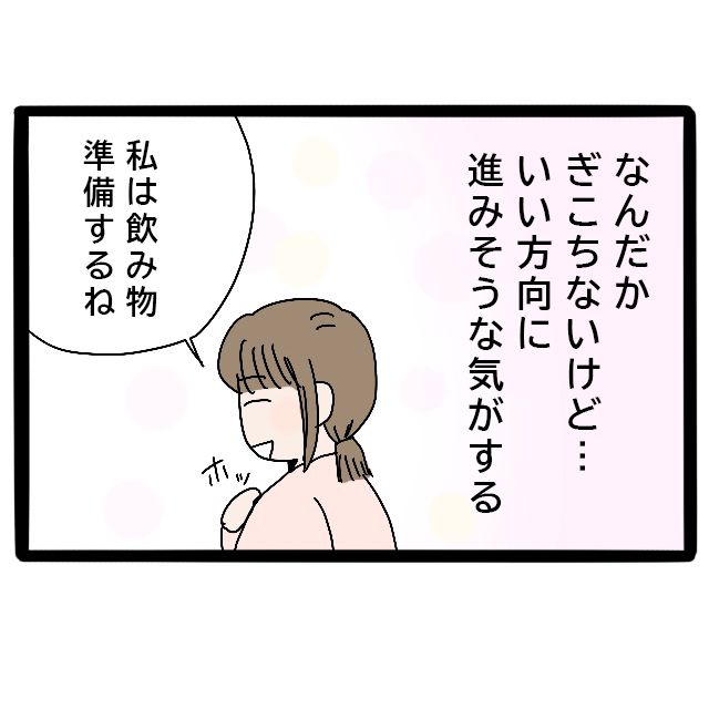 ふたりの会話を聞いてほっとしたカオリさんは「私は飲み物準備するね」と笑顔になりました。なんだかぎこちないけれど、良い方向へ進みそうなきがするとカオリさんは思いました。