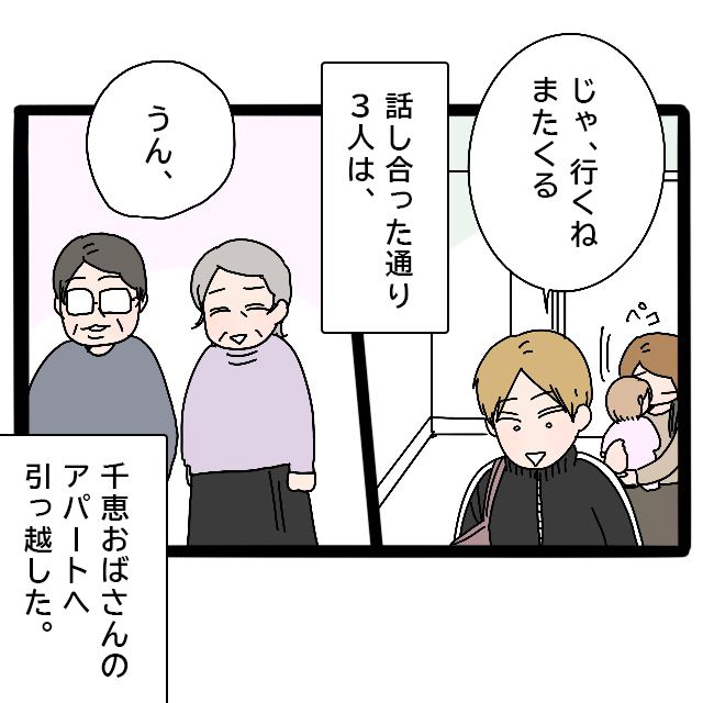 千恵伯母さんの提案で話し合った通り、しばらくして憲一さん、みずほさん、つむちゃん家族は千恵伯母さんが経営するアパートに引っ越しました。