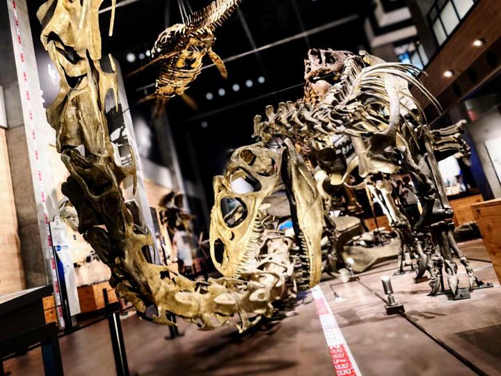 中でも、吹き抜けの空間を利用した立体的な大型恐竜の骨格化石は度肝を抜きます!