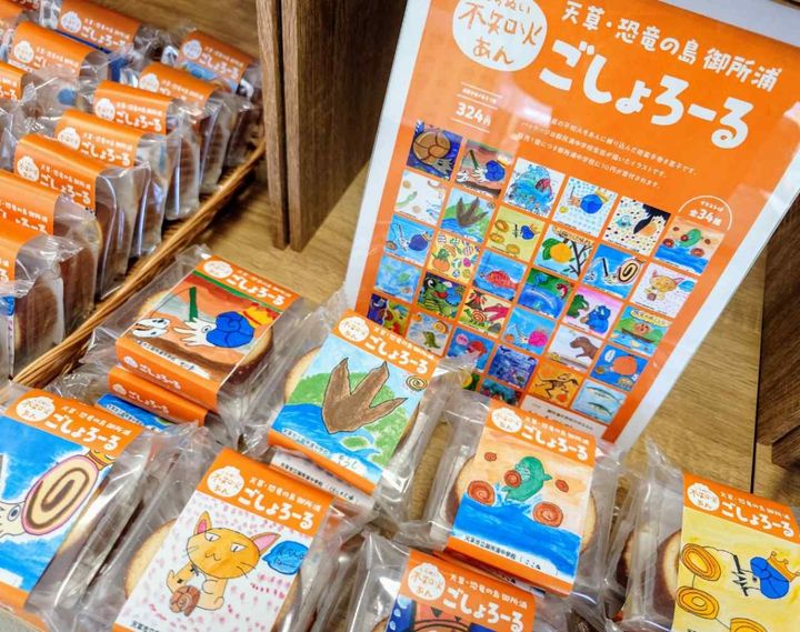 しおさい館で販売されている「ごしょろーる」は、御所浦中学校の生徒と天草市の老舗菓子メーカー「イソップ製菓」、「御所浦未来島」がコラボして生まれたお菓子。