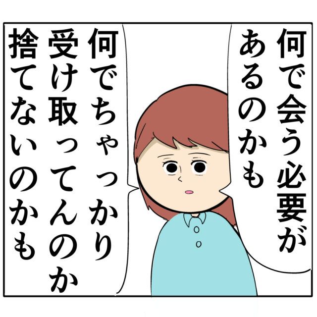 しかし、めいさんはろみ緒さんの言い訳をバッサリ切り捨てます。「何で会う必要があるのかも、何でちゃっかり受け取ってんのか、捨てないのかも」