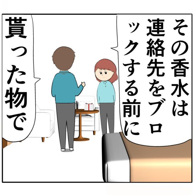 「その香水は連絡先をブロックする前に貰った物で」と必死に言い訳を始めるろみ緒さん。
