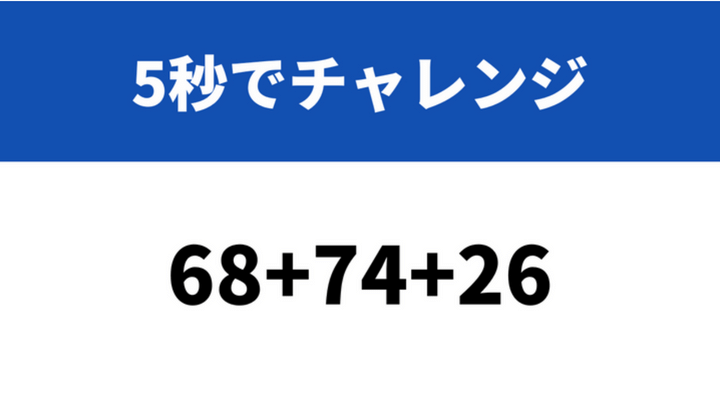【頭の体操】小学生でも分かる問題に挑戦!「68+74+26」→5秒でチャレンジ