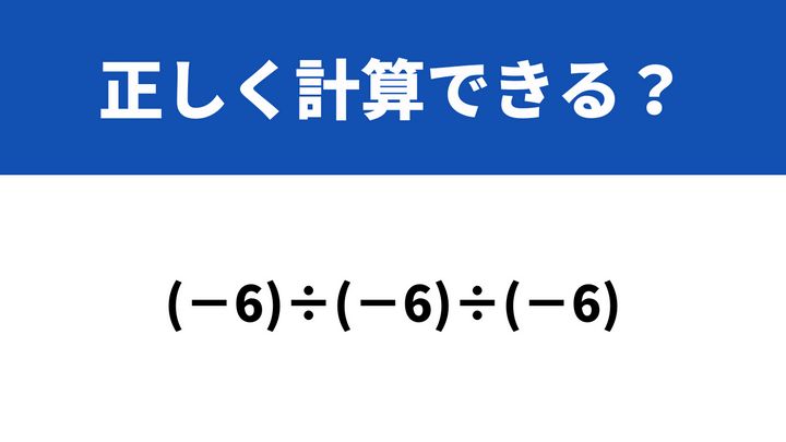 マイナス符号の割り算…やり方覚えてる?「(−6)÷(−6)÷(−6)」→正しく計算できる?